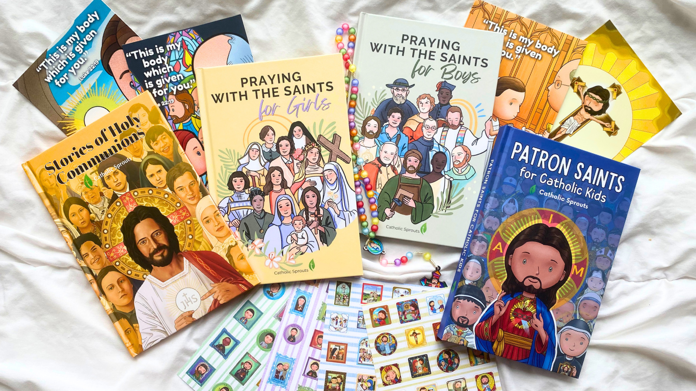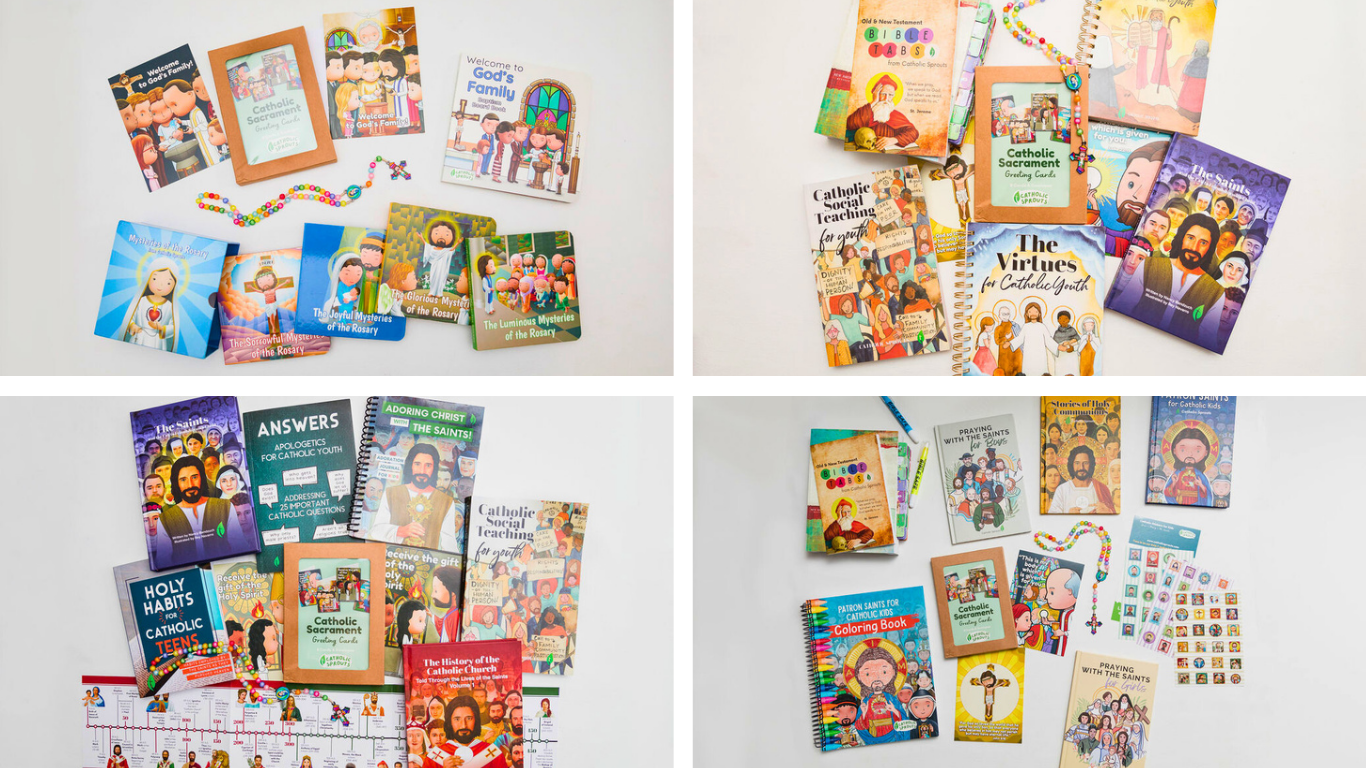 We created Catholic Sprouts with the intention of helping EVERY family (no matter how they look) Learn the Faith + Raise Saints! We create authentically Catholic resources (daily podcast, books, activities, apparel, etc) for families on their journey toward Jesus, Heaven, & Sainthood!