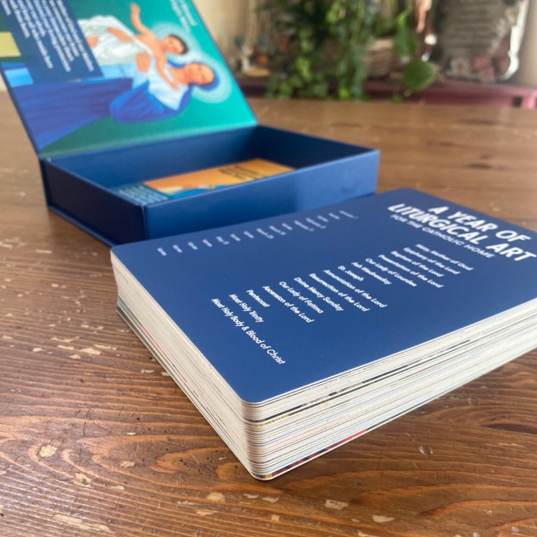 Each print is printed on ultra-thick card stock with a soft finish. On the back of each print, you will find a description of the feast day and prayer you can say as a family. All 32 prints will arrive in a beautiful magnet box for safekeeping.