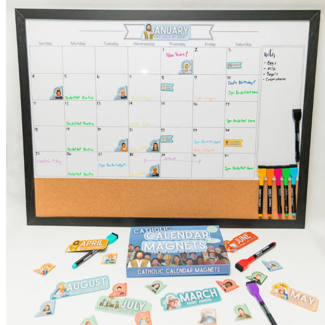 The new and GREATLY improved Catholic Calendar Magnets are perfect for your family or classroom whiteboard calendar. Easily transform ANY magnetic calendar into a CATHOLIC calendar!