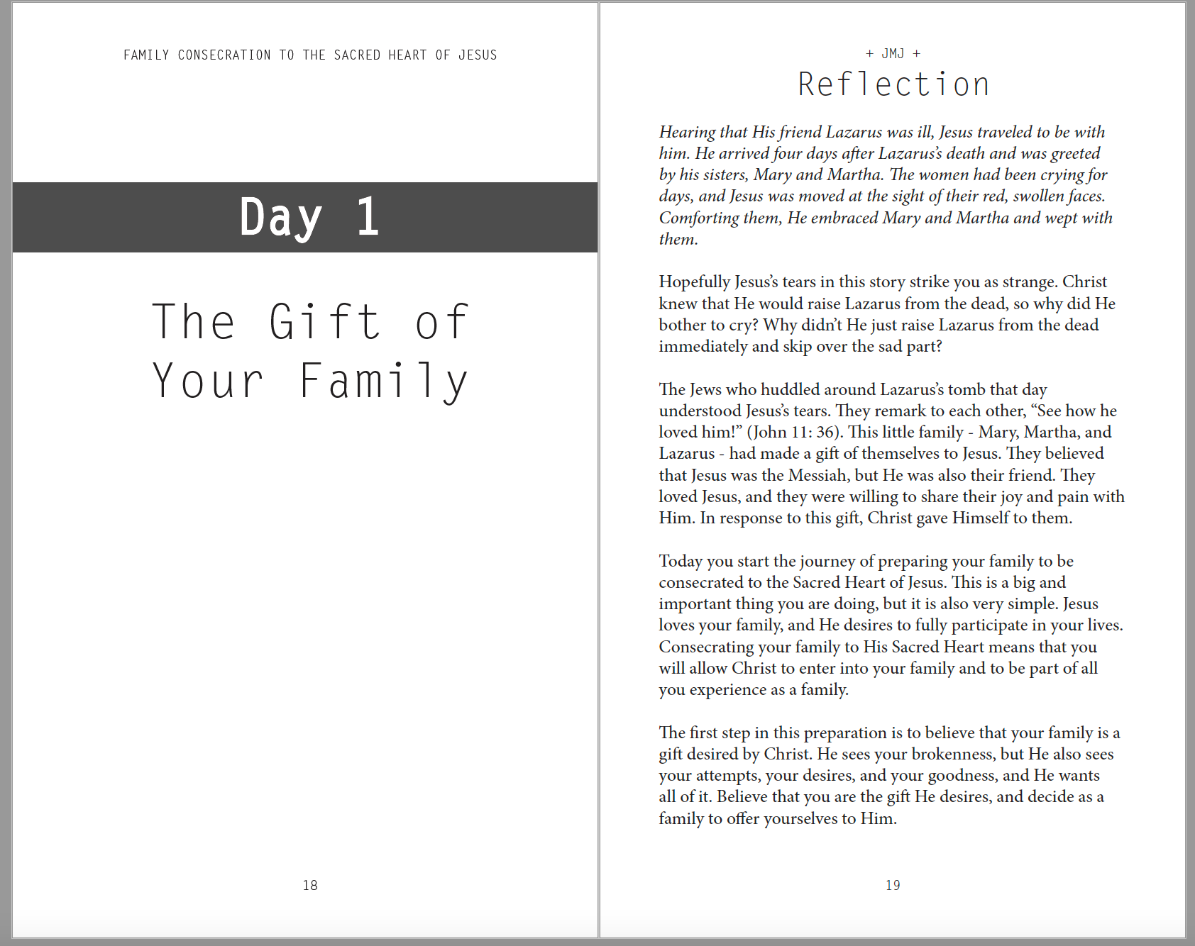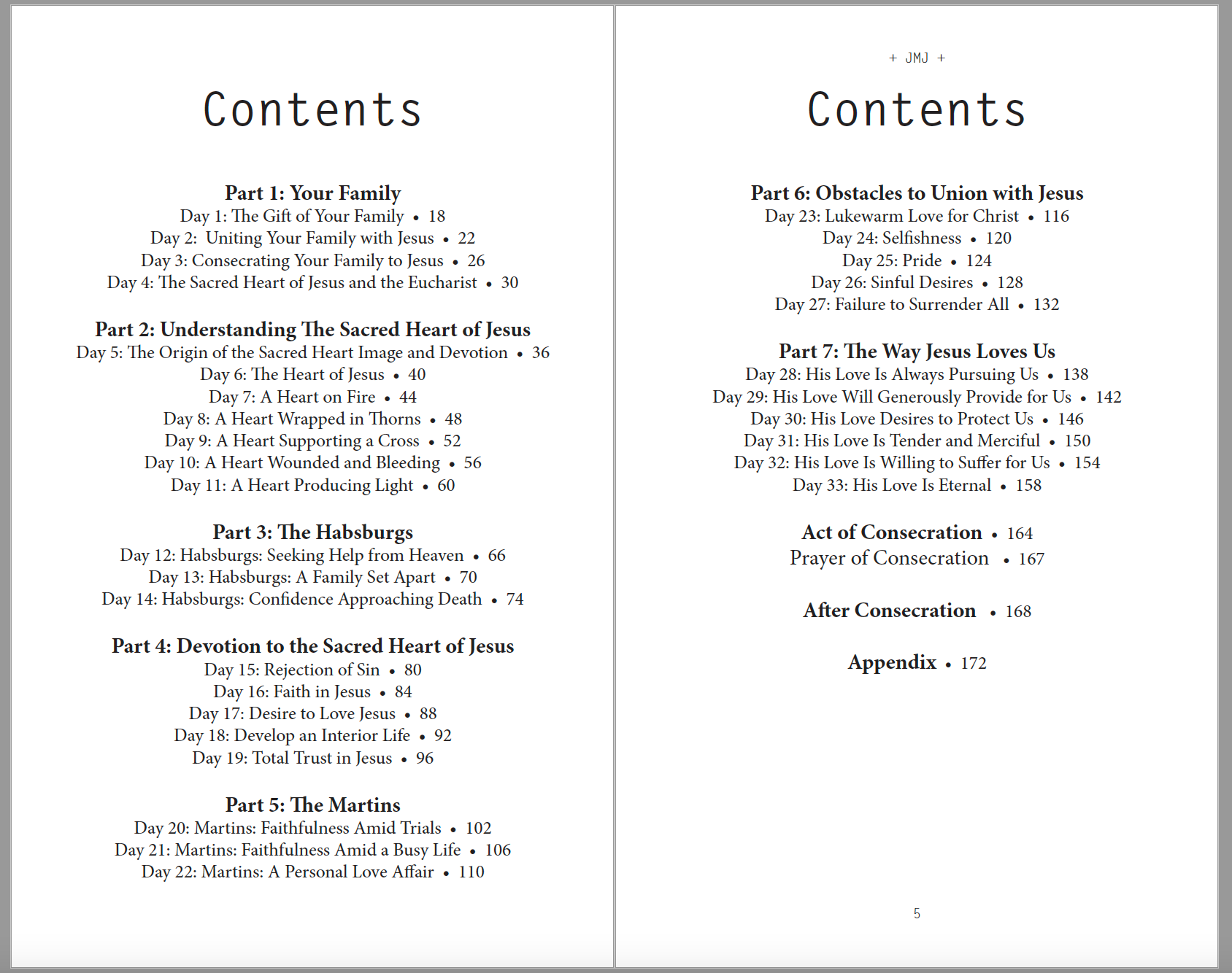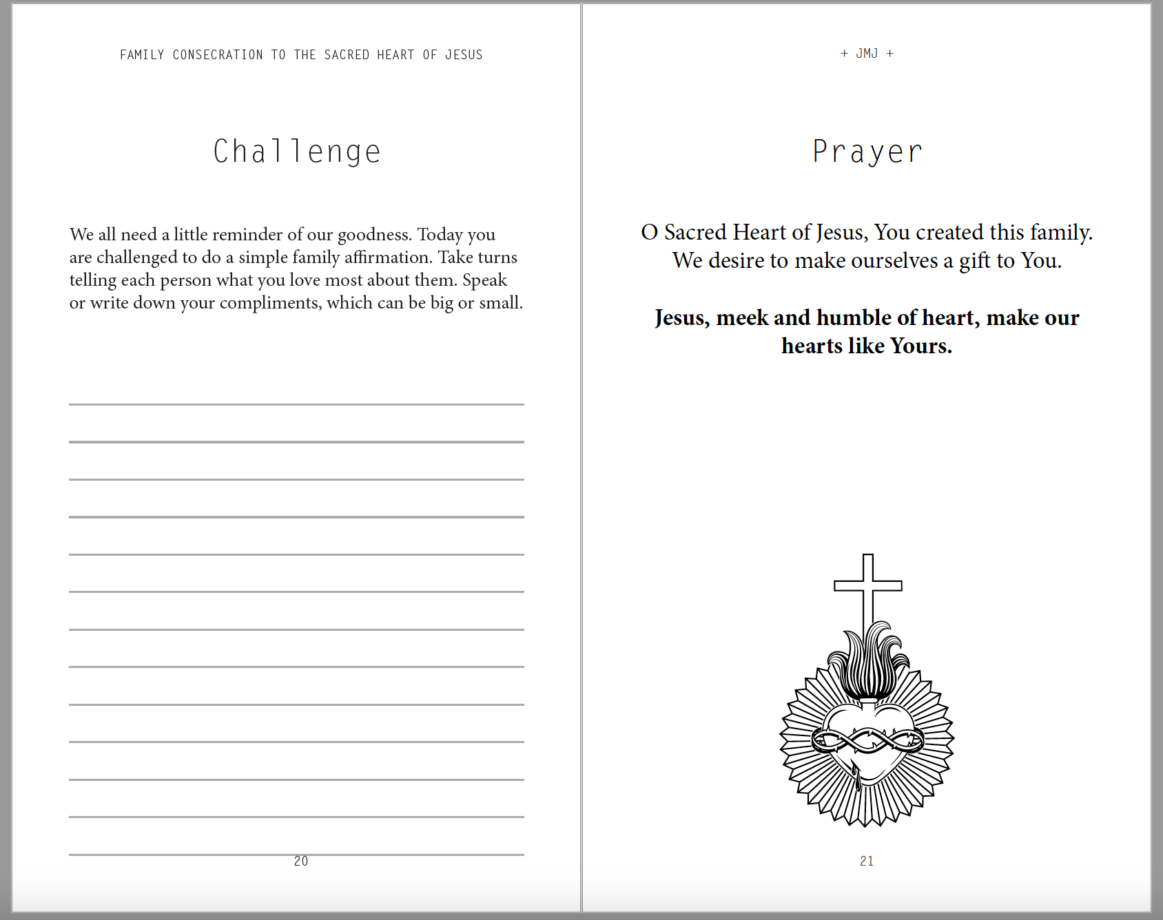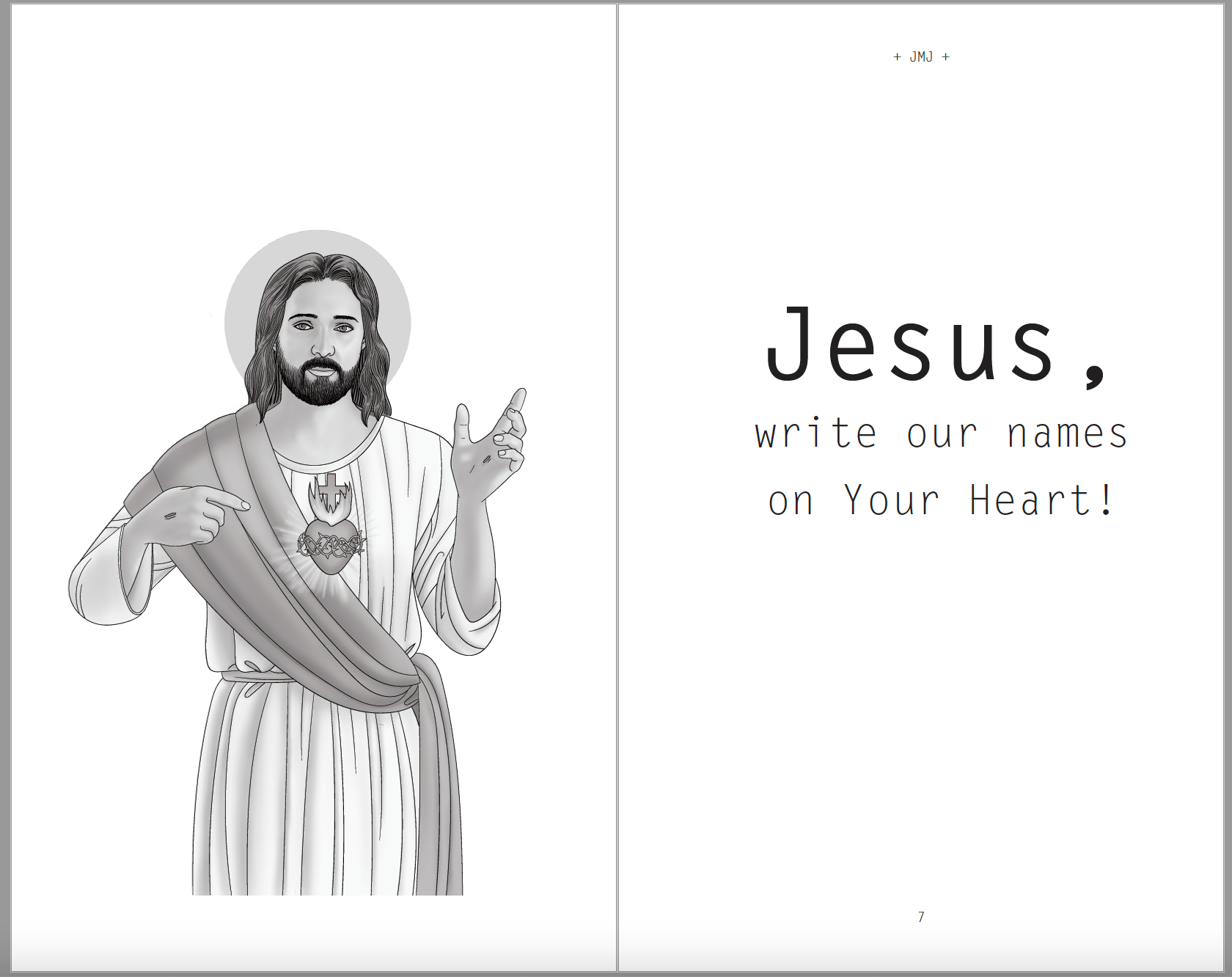 This is your invitation to join our family in consecrating yourselves to the Sacred Heart of Jesus. This beautiful book, WRITE OUR NAMES ON YOUR HEART: FAMILY CONSECRATION TO THE SACRED HEART OF JESUS, will guide you through 33 days of preparation for this consecration as you explore: