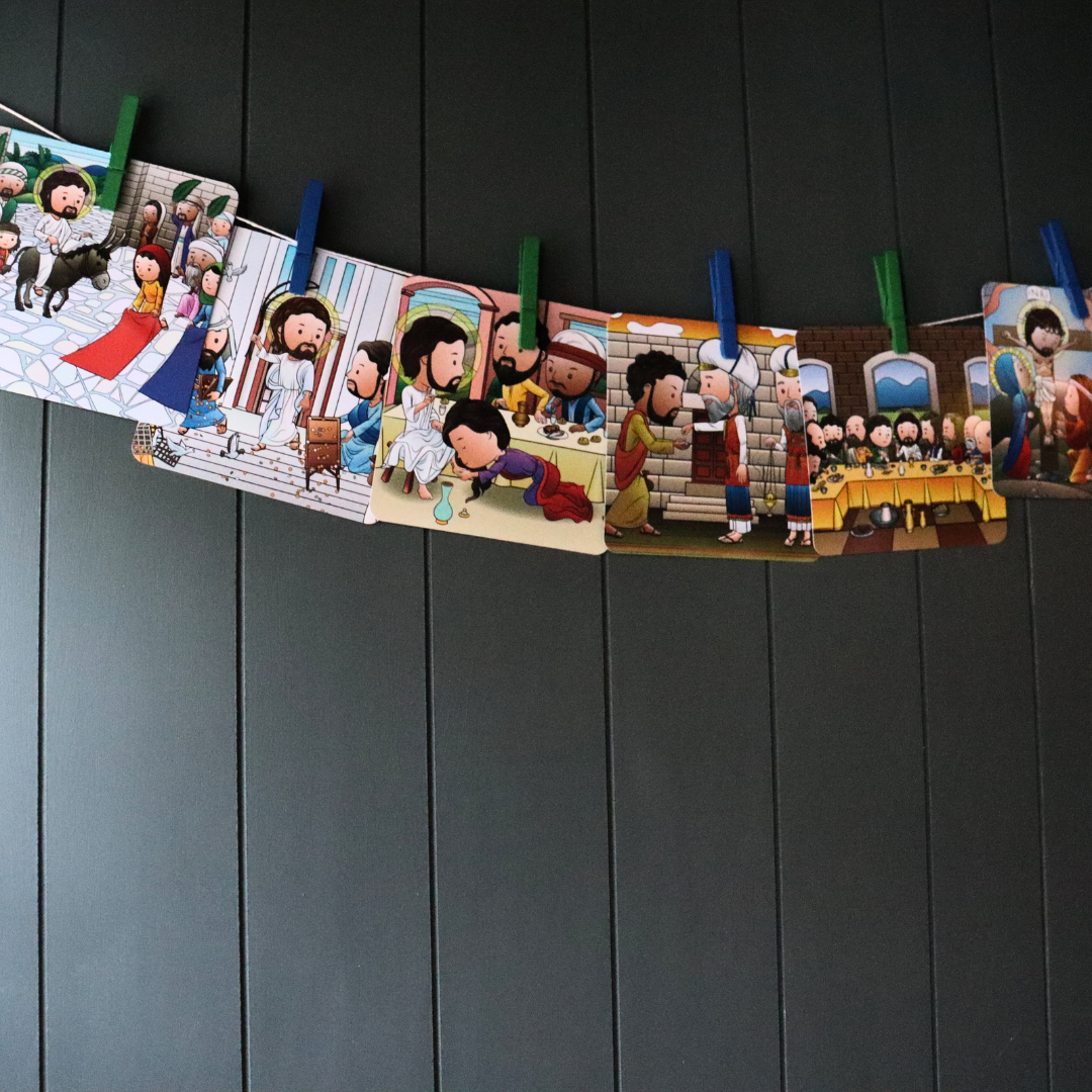 The art prints were created in a child-friendly style; they include vivid details that will help adults and children understand the events of Jesus’s life.