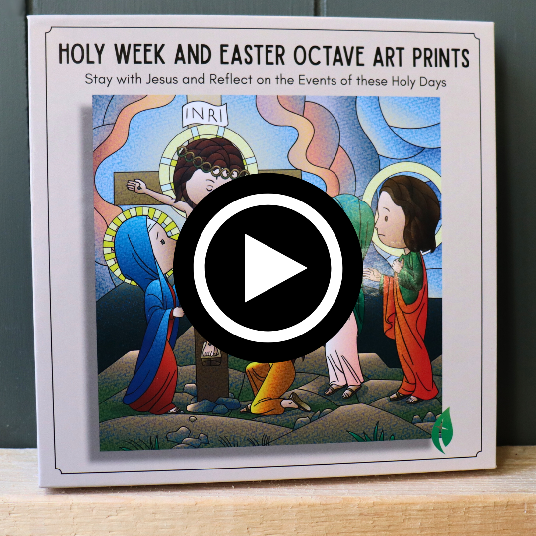This set of 15 beautiful original art prints depicts the events of Holy Week and the Easter Octave in a kid-friendly and scripturally accurate way. Display the print in your home or classroom, and tune into the FREE audio story recorded by Nancy from Catholic Sprouts for each day!