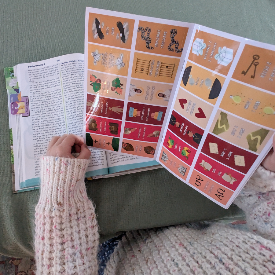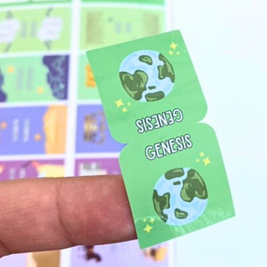 - 72 full-color stickers (the books of 1 Chronicles and 2 Chronicles have one combined sticker)