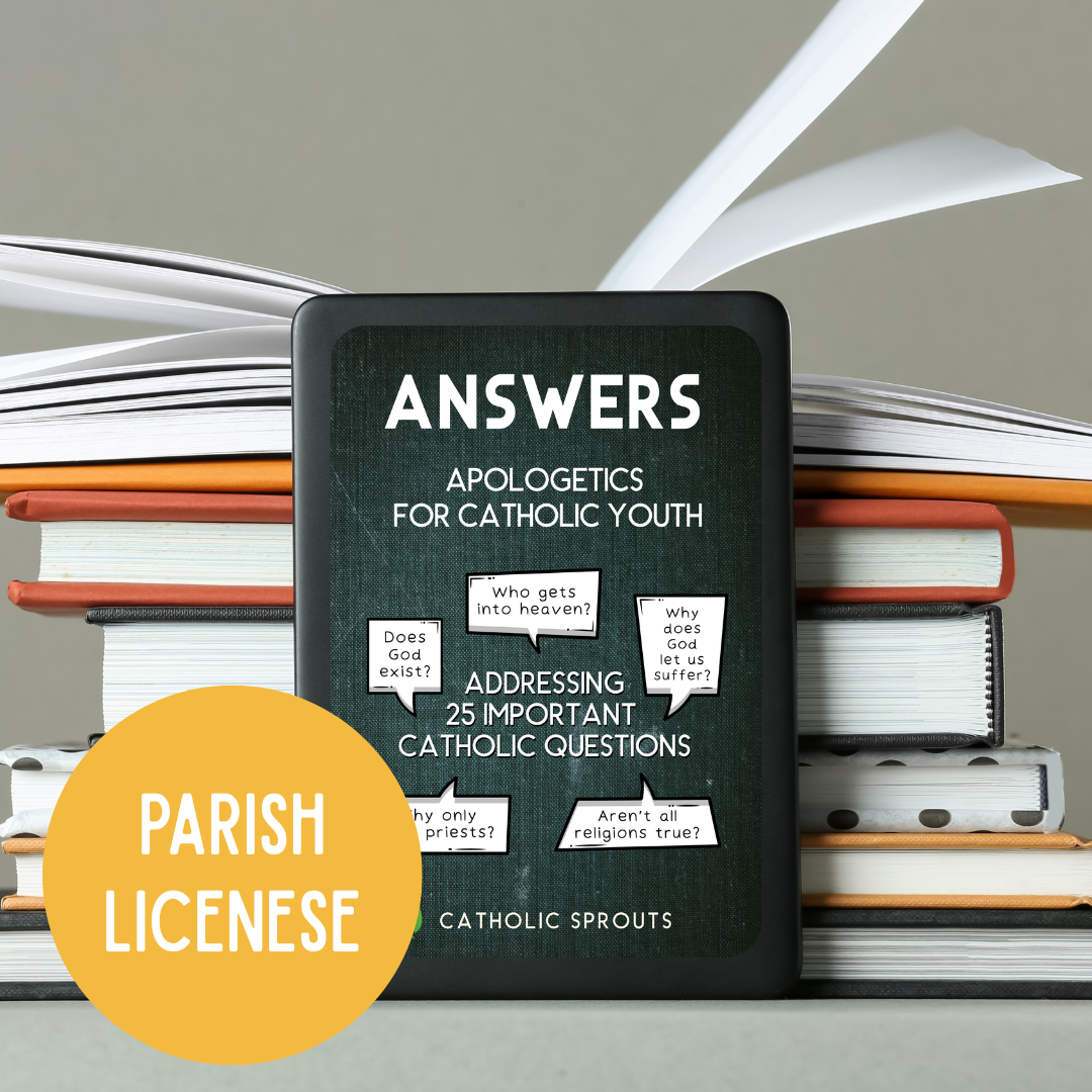 With this purchase you will receive a digital copy of the ANSWERS: Apologetics for Catholic Youth, as well as our permission to print and share with all the families you serve.