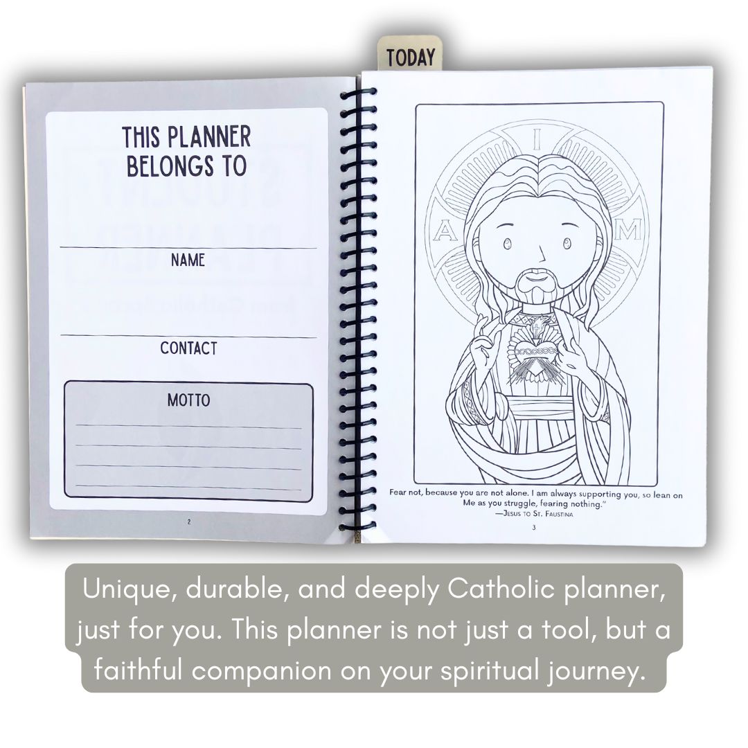 Attention Catholic Students! We've crafted a unique, durable, and profoundly Catholic planner for you. This planner is a tool and a faithful companion on your spiritual journey.