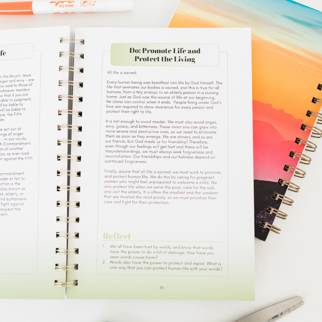 Therefore, The Ten Commandments for Catholic Youth can also renew anyone’s reception of the Sacrament of Confession. The detailed, historical, biblical, and saintly look at each commandment will enable you to more fully understand God’s Law and identify where you might be falling short.